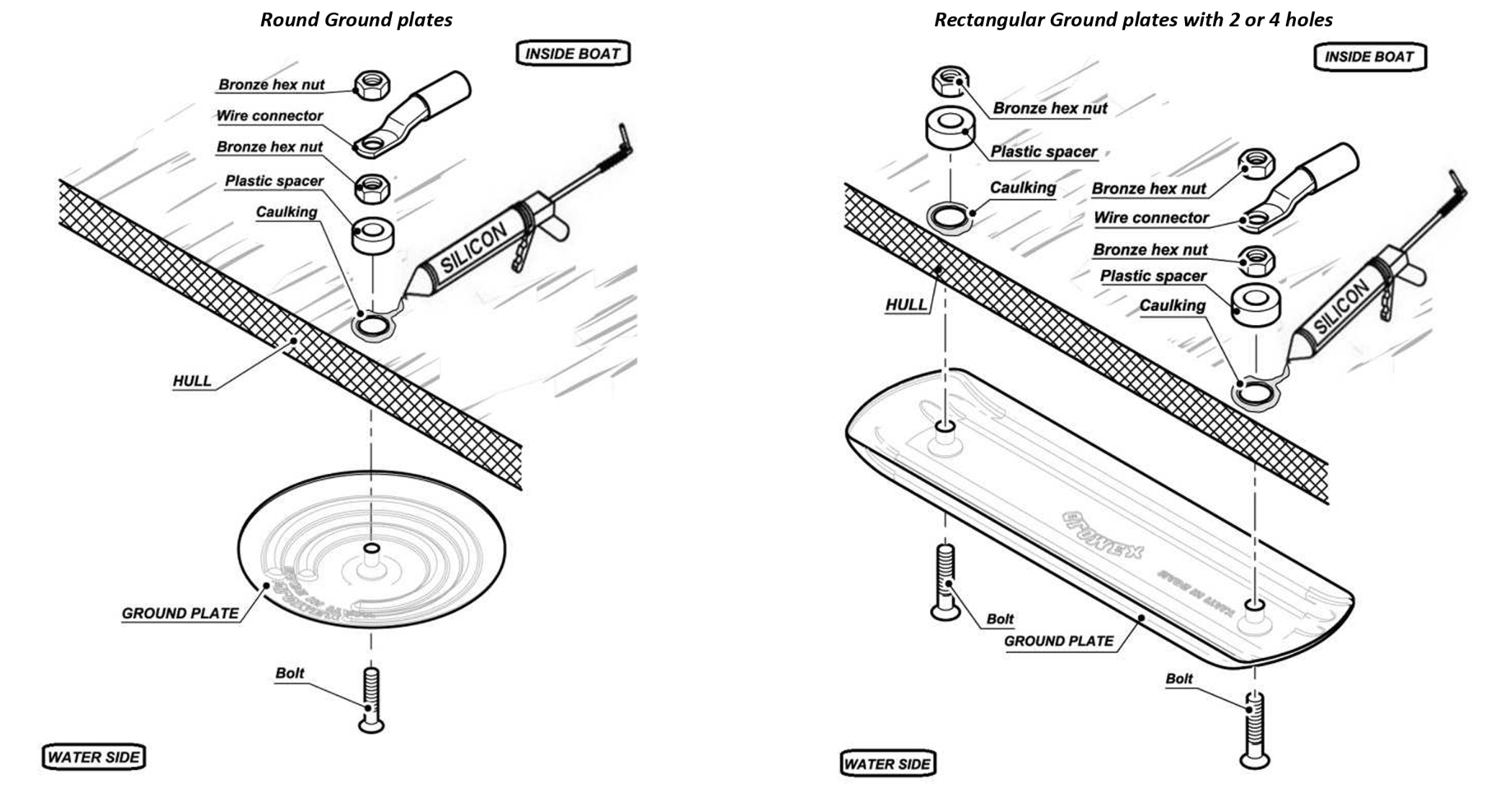 Plattorna monteras på skrovet med korrosionsbeständiga bronsbultar och gummidistanser, vilket garanterar lång livslängd och hög motståndskraft mot marina miljöer.