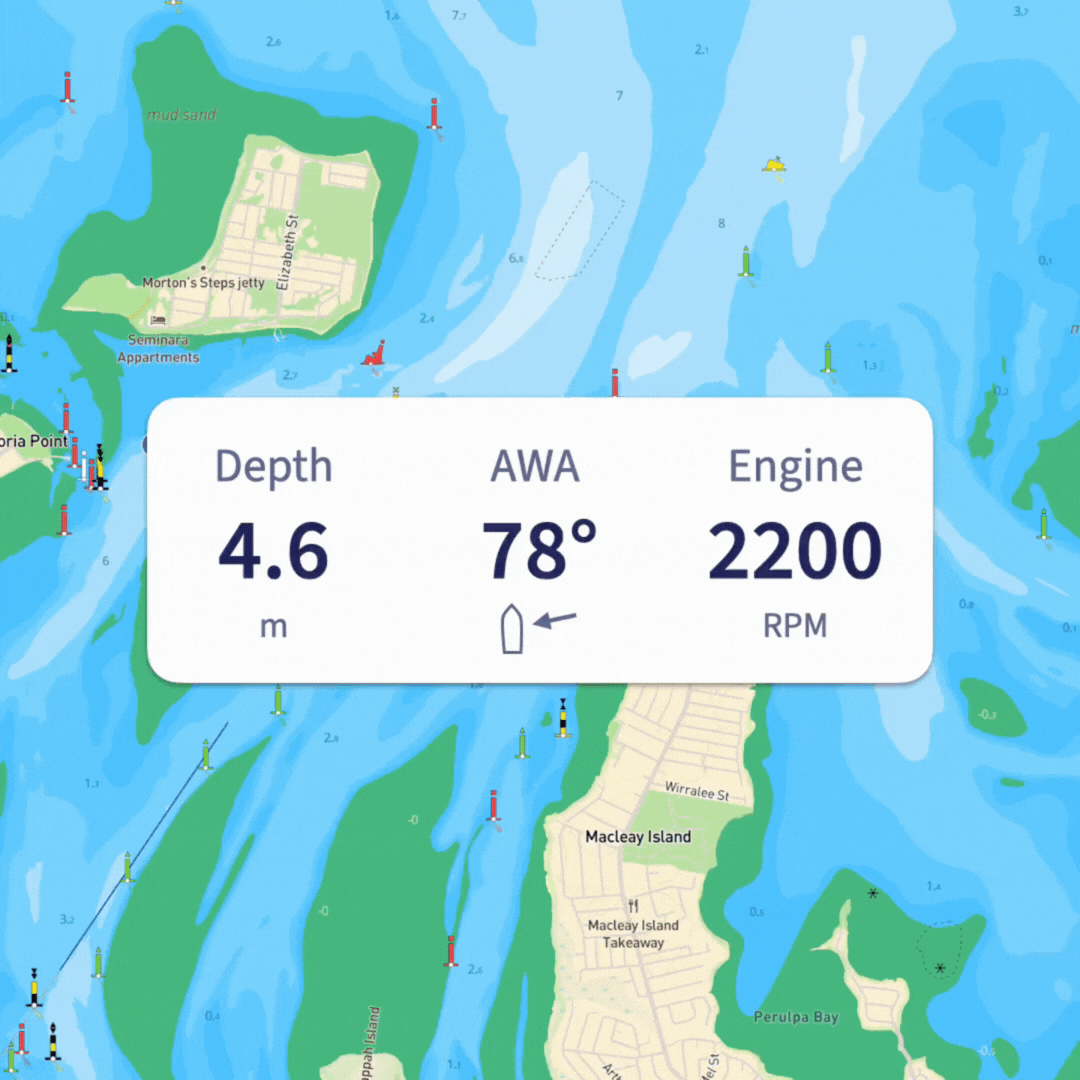 Med NMEA Connect får du tillgång till kritisk fartygsdata direkt i appen, inklusive: