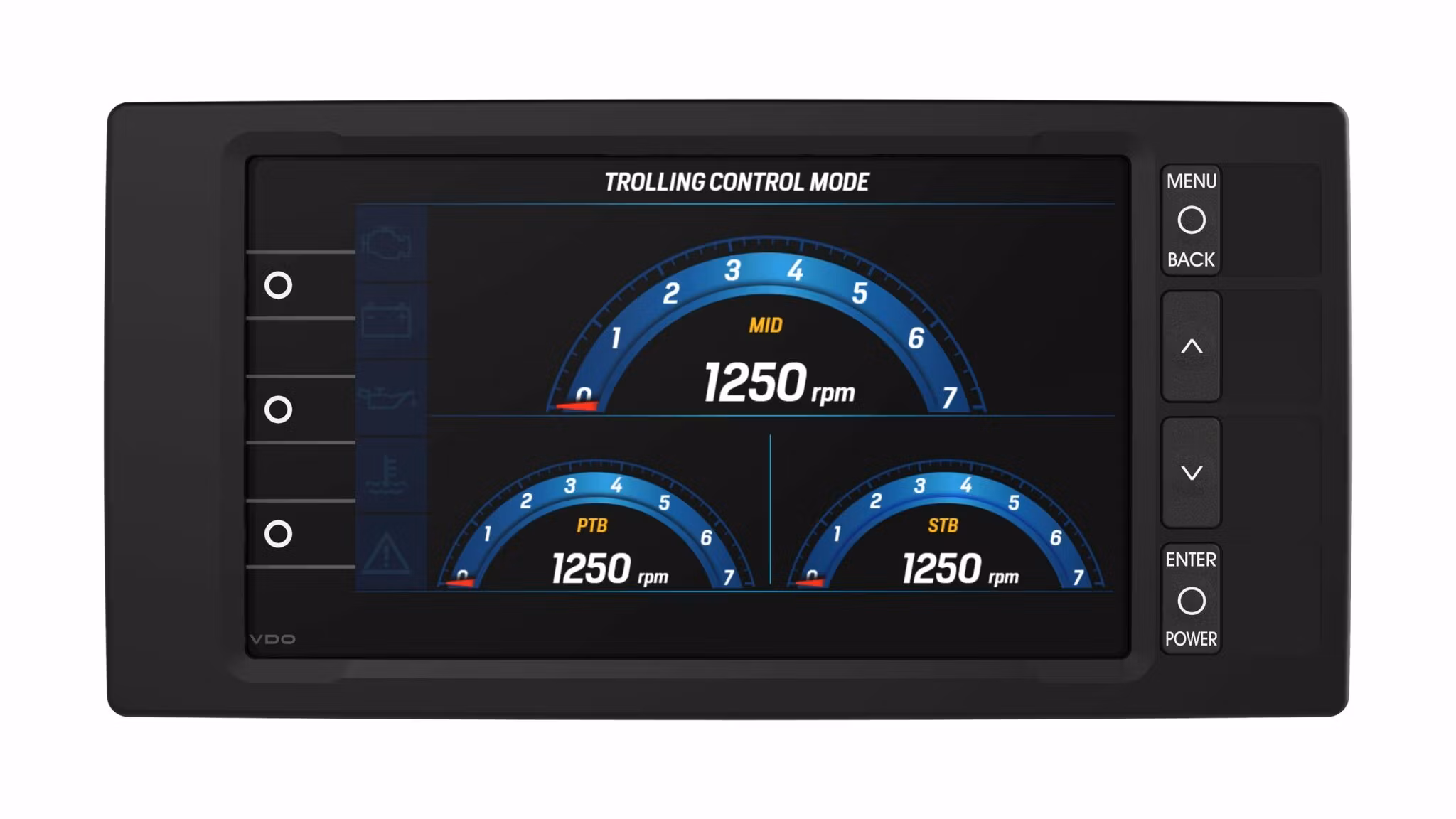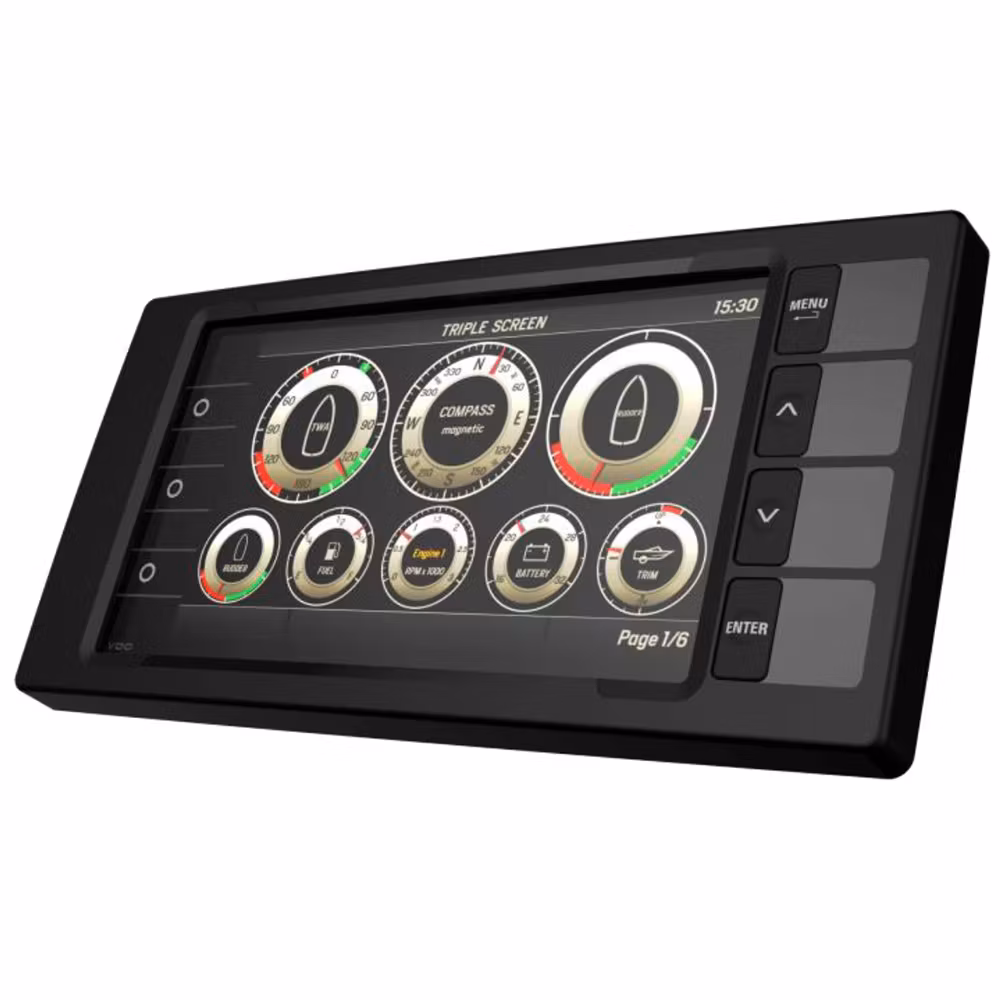 La pantalla tiene cuatro botones pulsadores y tres botones táctiles para una fácil navegación por los modos de visualización. Gracias a las entradas analógicas, J1939 y NMEA 2000, la pantalla puede mostrar datos del motor de prácticamente todos los motores del mercado. La pantalla convierte los datos de señales analógicas o J1939 a NMEA 2000 y también funciona como un maestro, lo que significa que se pueden conectar instrumentos satélite a través de EasyLink.