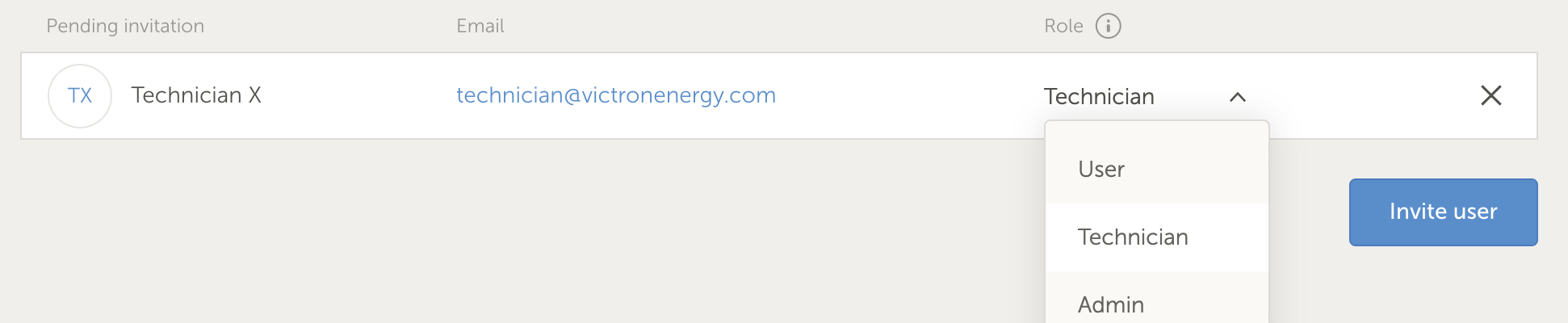 Muutaaksesi käyttäjän käyttöoikeuden "Teknikoksi", siirry sivustosi käyttäjäasetuksiin VRM:ssä. Löydät jokaisen käyttäjän vierestä avattavan valikon, jossa on vaihtoehdot "Käyttäjä", "Teknikko" ja "Ylläpitäjä". Napsauta käyttäjätaulukon yläosassa olevaa "i"-kuvaketta nähdäksesi luettelon toimista ja nähdäksesi, mitkä käyttäjäroolit ovat sallittuja VRM:ssä.