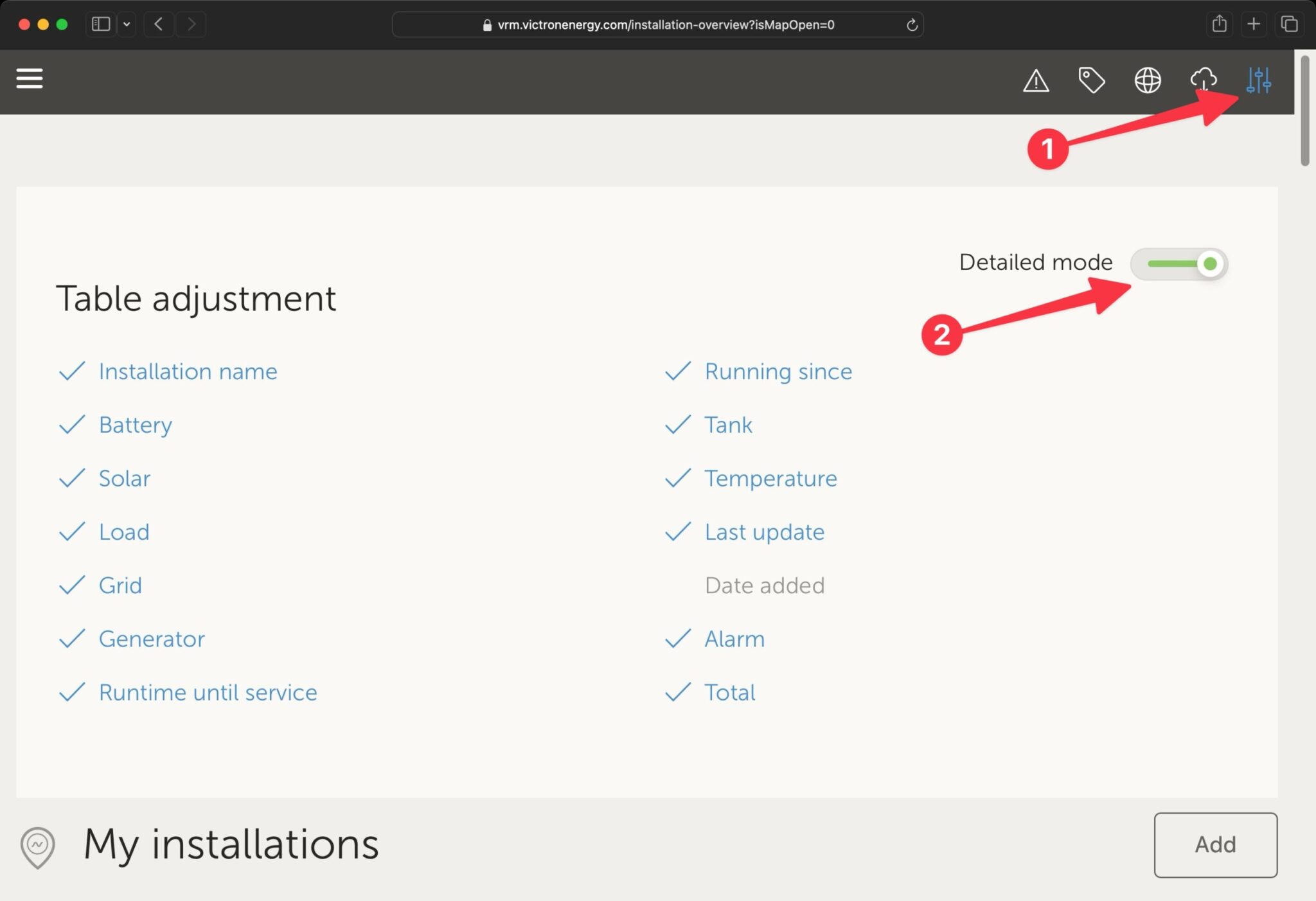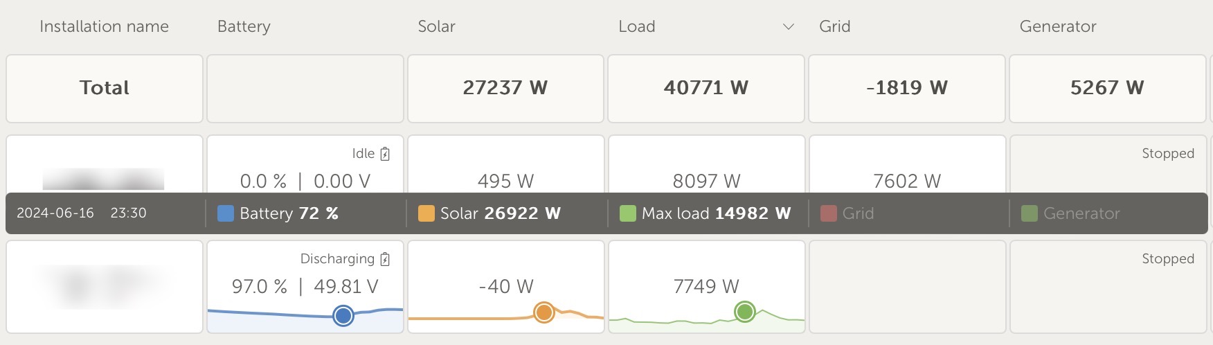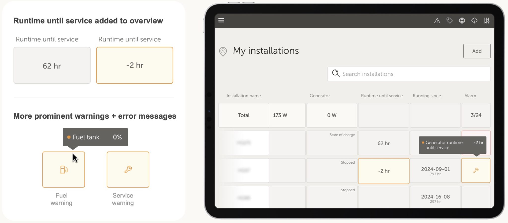 Victron Energy on parantanut varoitusten ja hälytysten hallintaa asennusnäkymässä. Sinun ei enää tarvitse napsauttaa sijaintia tunnistaaksesi ongelmat – pidä vain hiiren osoitinta varoituksen päällä näyttääksesi ponnahdusikkunan yksityiskohdilla. Napsauta hälytystä päästäksesi hälytyslokiin.