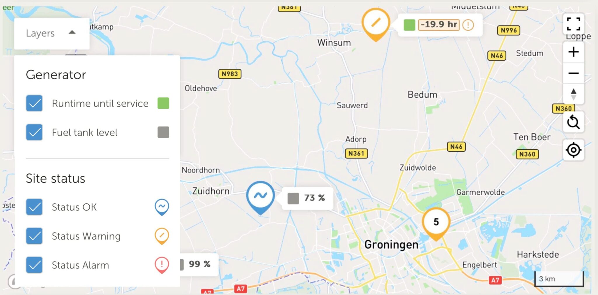 Kun hallitaan useita sivustoja, huoltotoimenpiteet voidaan automatisoida kentällä olevan huoltohenkilöstön avulla. Tällaisissa tapauksissa voi säästää aikaa, jos keskitetty operaattori valvoo ja palauttaa huoltokellon etänä.
