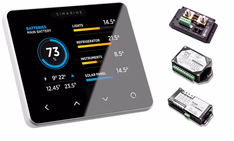 PICO BLUE (MONTAGE EN SURFACE, ARGENT), est le modèle avancé de Simarine en matière de surveillance de batterie avec calcul en temps réel de l'état de santé de la batterie pour une mesure précise. PICO est disponible en quatre modèles (montage en surface ou sur panneau, châssis noir ou argent).