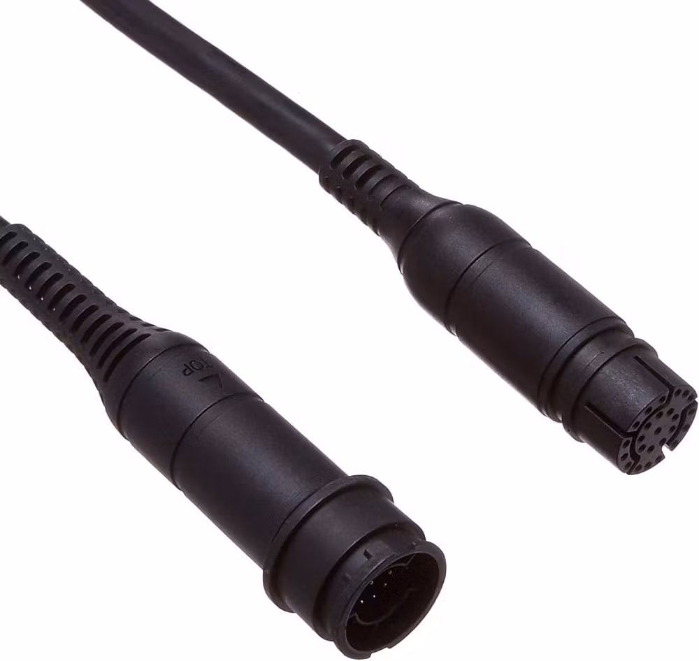 RealVision 3D forlengerkabler for både aktermontert RV-100 og gjennomskrogsmonterte givere RV-200 og RV-300. Hver forlengerkabel har vanntett tilkobling som vris på multifunksjonsdisplayets ende og et kompatibelt uttak ved giverens ende. For best ytelse anbefaler vi høyst to (2) forlengerkabler per kabeltrekking.