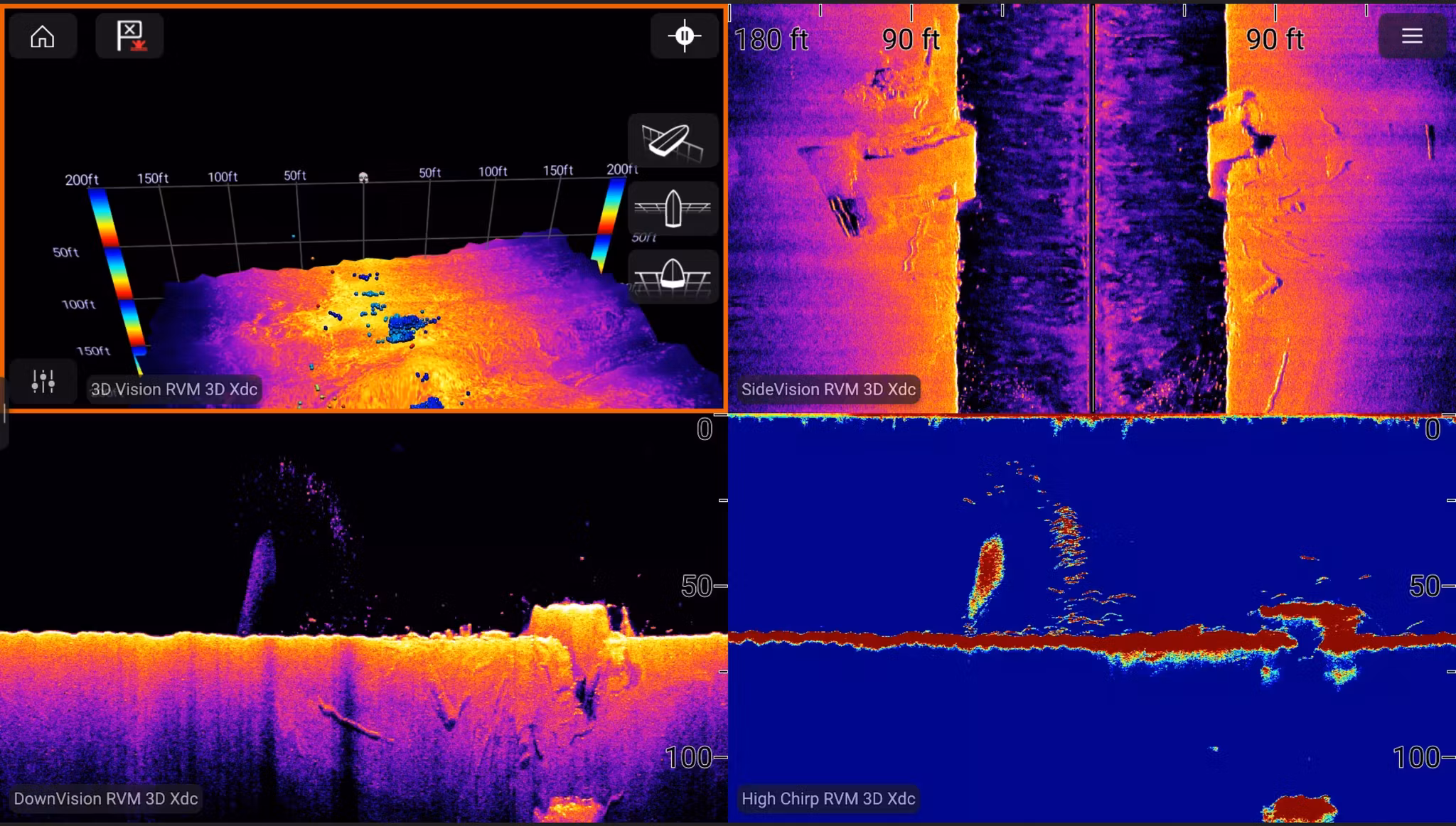 Med RealVision MAX 3D fiskesökare kan fiskare se under, bakom och på sidorna av båten. Få ett nytt perspektiv på undervattensvärlden som förenklar lokalisering och hållning till strukturer