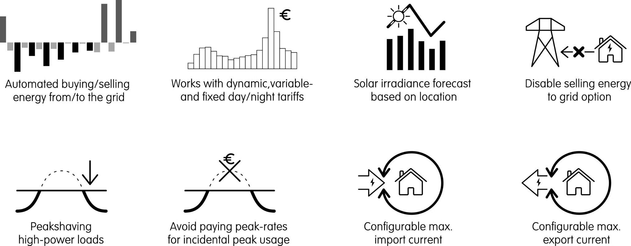 Algorytm uwzględnia takie informacje, jak aktualny koszt energii, typ baterii (a tym samym żywotność i koszt), pojemność, SoC (stan naładowania), maksymalne wskaźniki ładowania/rozładowania; Twoje typowe zużycie energii na podstawie czterotygodniowa historia; oraz prognozę pogody dotyczącą produkcji energii słonecznej – dla którego musi być znana Twoja lokalizacja.