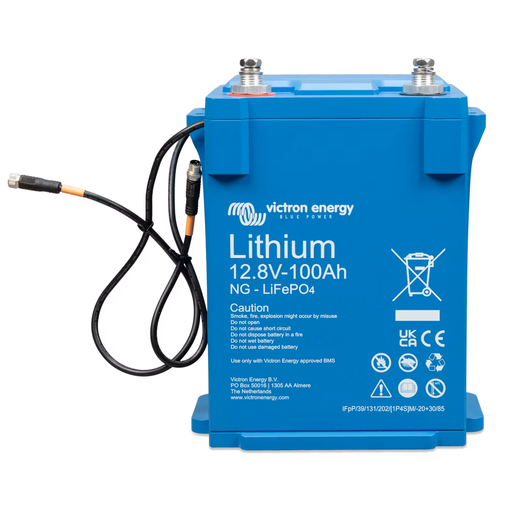 Victron Energys Litium-NG-batterier är litiumjärnfosfatbatterier (LiFePO4 eller LFP) tillgängliga med en nominell spänning på 12,8 V, 25,6 V eller 51,2 V i olika kapaciteter. De kan seriekopplas, parallellt och i  serie/parallellt för att skapa en batteribank för systemspänningar på 12 V, 24 V eller 48 V. Det högsta antalet  batterier i ett system är 50, vilket ger en högsta energilagring på 192 kWh i ett 12 V-system och upp till 384  kWh i ett 24 V- och 48 V-system.