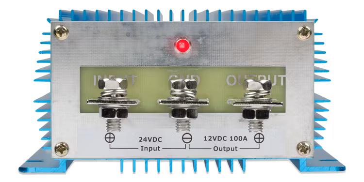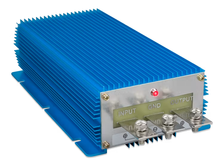 VICTRON ENERGY ORI241221226, är en komplett inkapslad DC-DC omvandlare som är vattentät, stötsäker och antändningsskyddad. Höljet är tillverkat av gjuten aluminium och elektroniken är ingjuten i plast.